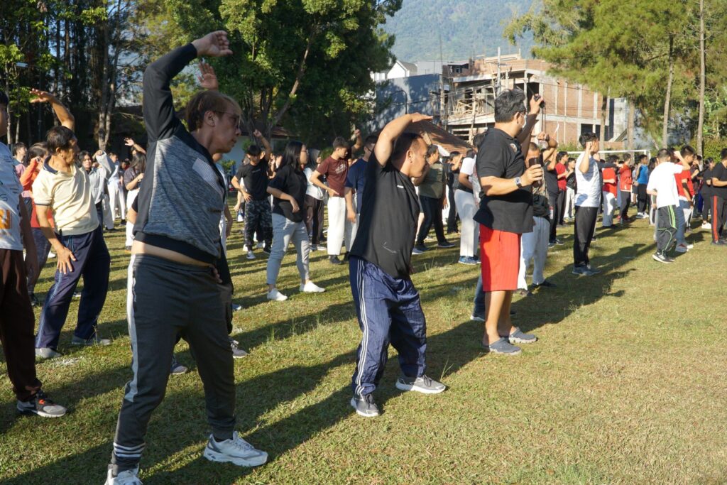 Setelah sarapan pagi, dilanjutkan dengan Latihan bersama juga di Lapangan Rumput YWI dari jam 08.00 hingga jam 09.30.