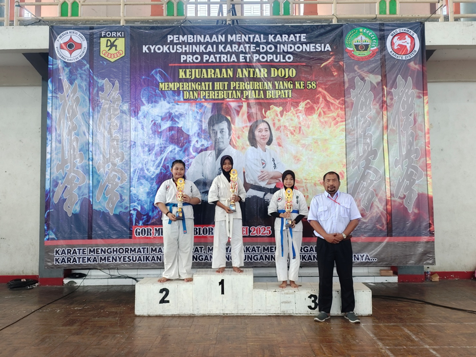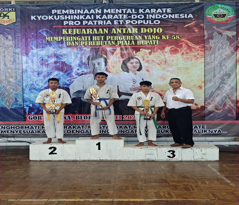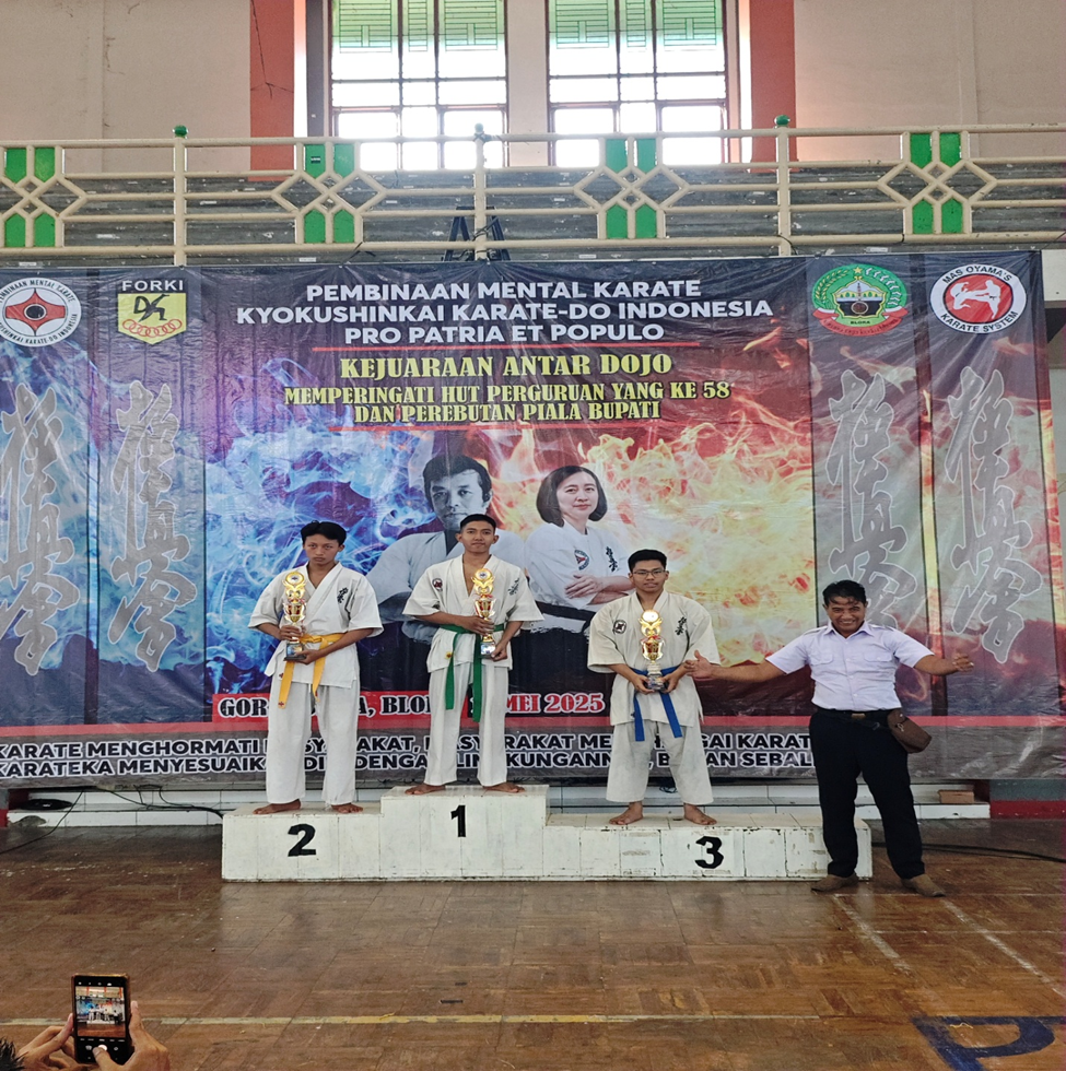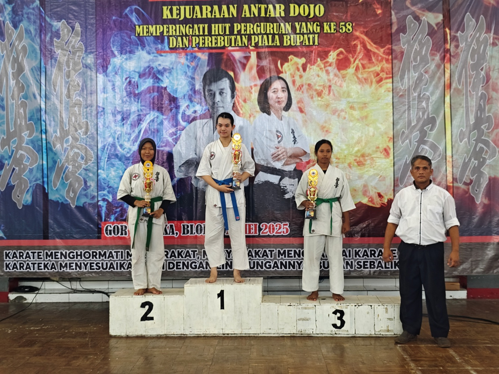 Kejuaraan antar dojo Jateng DIY tahun 2025 diadakan di GOR Mustika Bloara pada tanggal 11 Mei 2025, di ikuti oleh 73 peserta yang terbagi dari beberapa dojo di blora, semarang, Jogjakarta, dan purwokerto, dengan dua kategori perlombaan kata dan kumite.