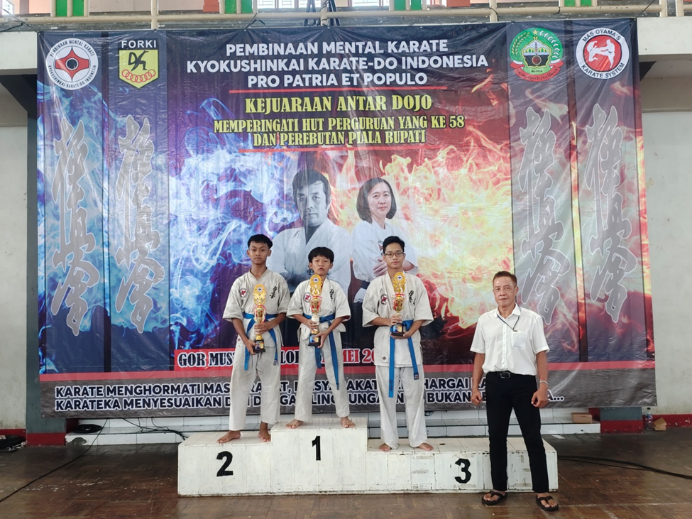 Juara kumite kelas junior putra usia maks 12 tahun, bb maks 40kg