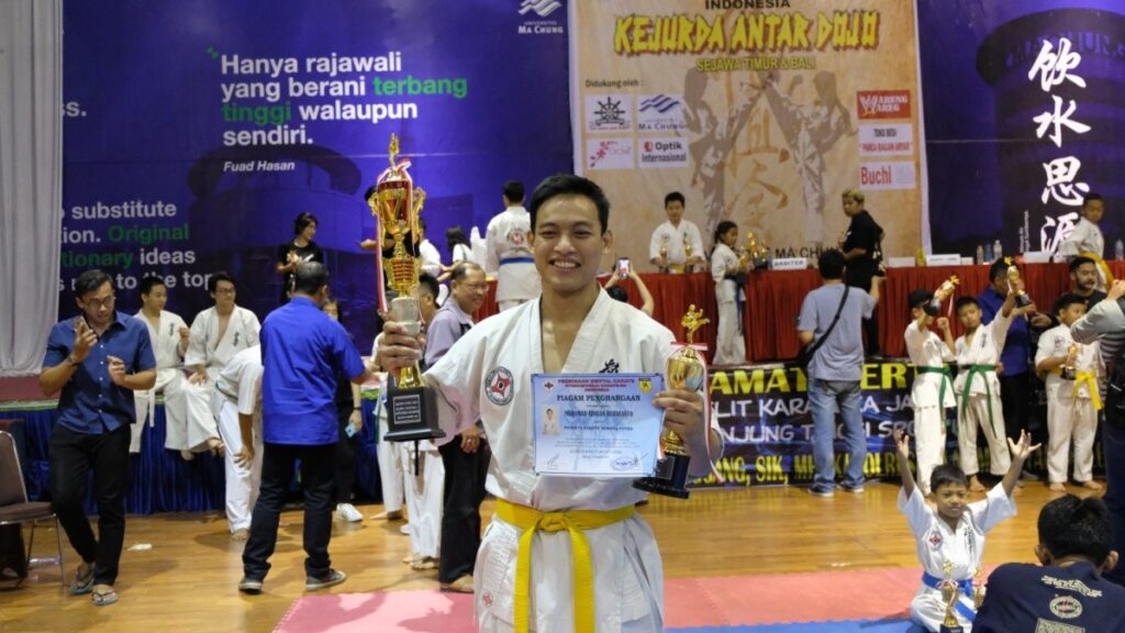 Kejurda Antar Dojo se-Jawa Timur dan Bali 2019 PEMBINAAN MENTAL KARATE Kyokushinkai Karate-Do Indonesia kembali digelar pada tanggal 10 November 2019 bertempat di Balai Pertiwi Universitas MaChung Malang. Kejurda kali ini diselenggarakan oleh tuan rumah yaitu Dojo Malang Umum. Sebanyak 160 peserta dari 26 dojo dari seluruh Jawa Timur dan Bali sangat antusias dalam berpartisipasi pada Kejurda kali ini.