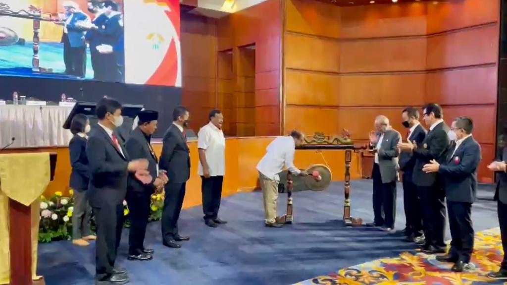 Pembukaan Rakernas secara resmi dilakukan oleh perwakilan dari Kemenpora dengan memukul gong.