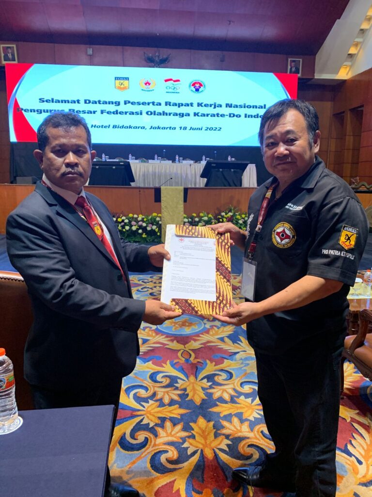 Dalam kesempatan Rakernas juga dilakukan Penyerahan dokumen pengurus baru Perguruan Periode 2022 – 2025 & Alamat Sekretariat Perguruan pada Ketua bidang Organisasi PB FORKI.